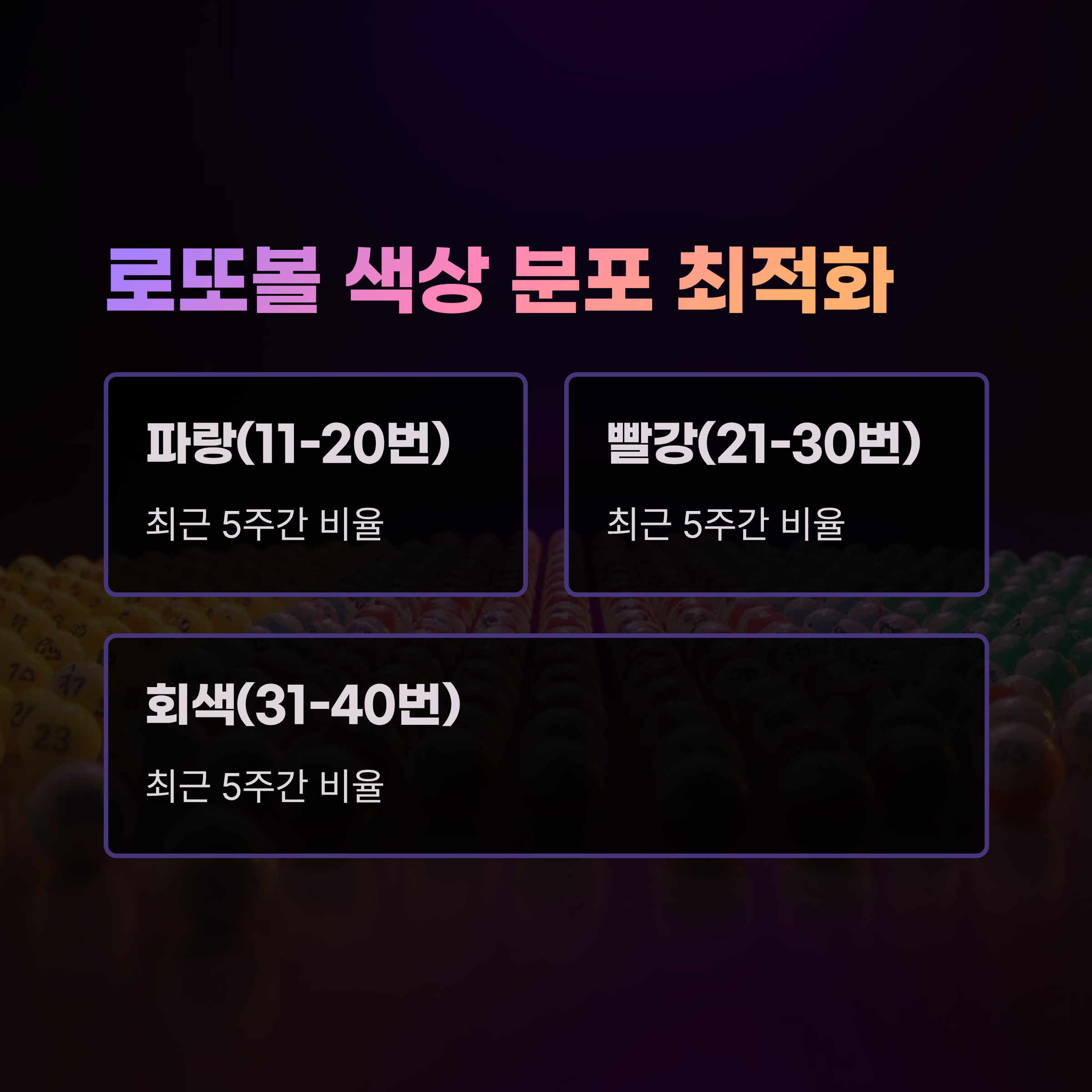 이 비율을 1185회 조합에 적용하면 11-20번대에서 1-2개, 21-30번대에서 1-2개, 31-40번대에서 1-2개를 선택하는 것이 최근 트렌드와 일치합니다. 41-45번대는 상대적으로 출현 빈도가 낮아 0-1개 정도로 제한하는 것이 바람직합니다.