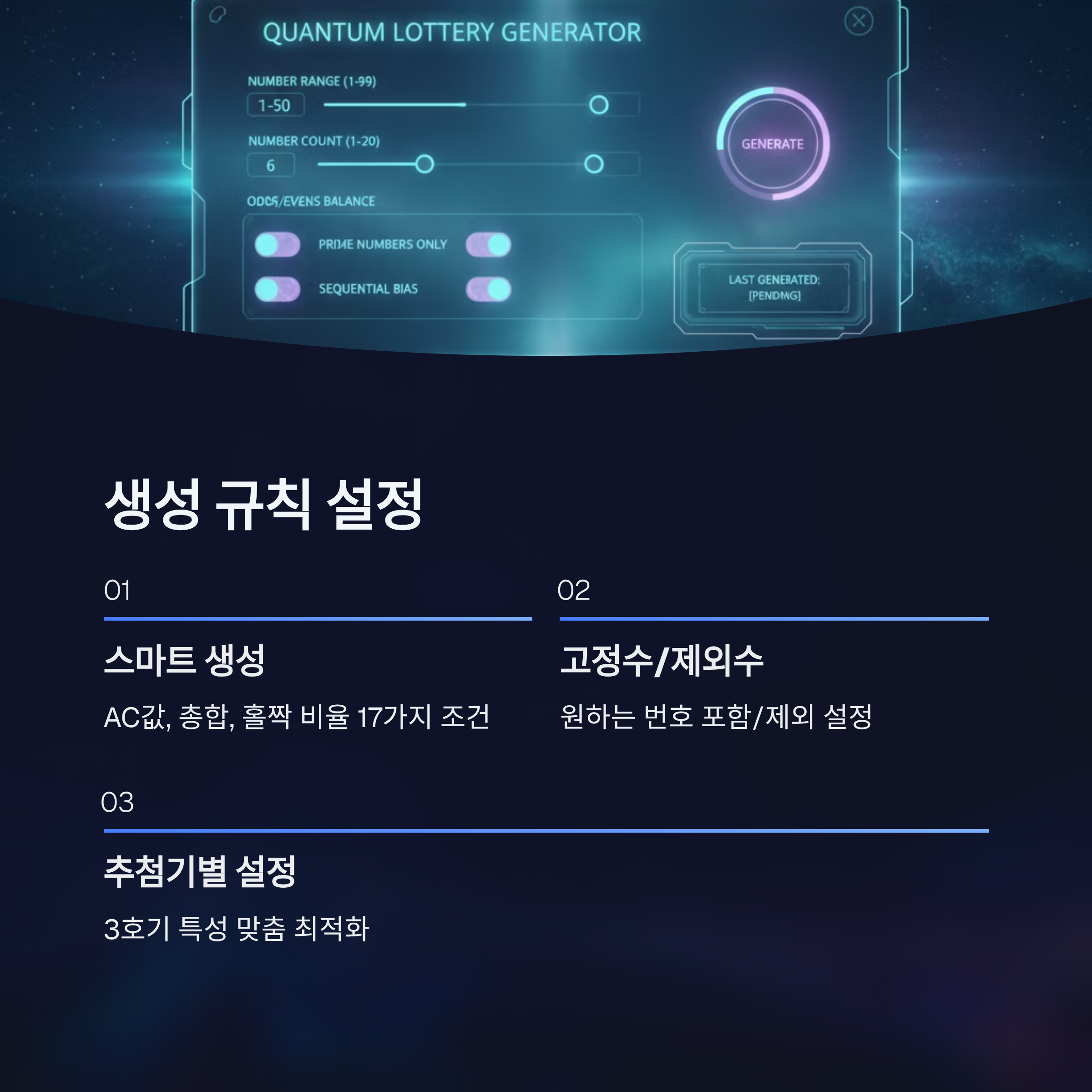 '추첨기별 설정'에서는 현재 사용 중인 추첨기에 맞춰 최적화된 번호를 생성할 수도 있어요.