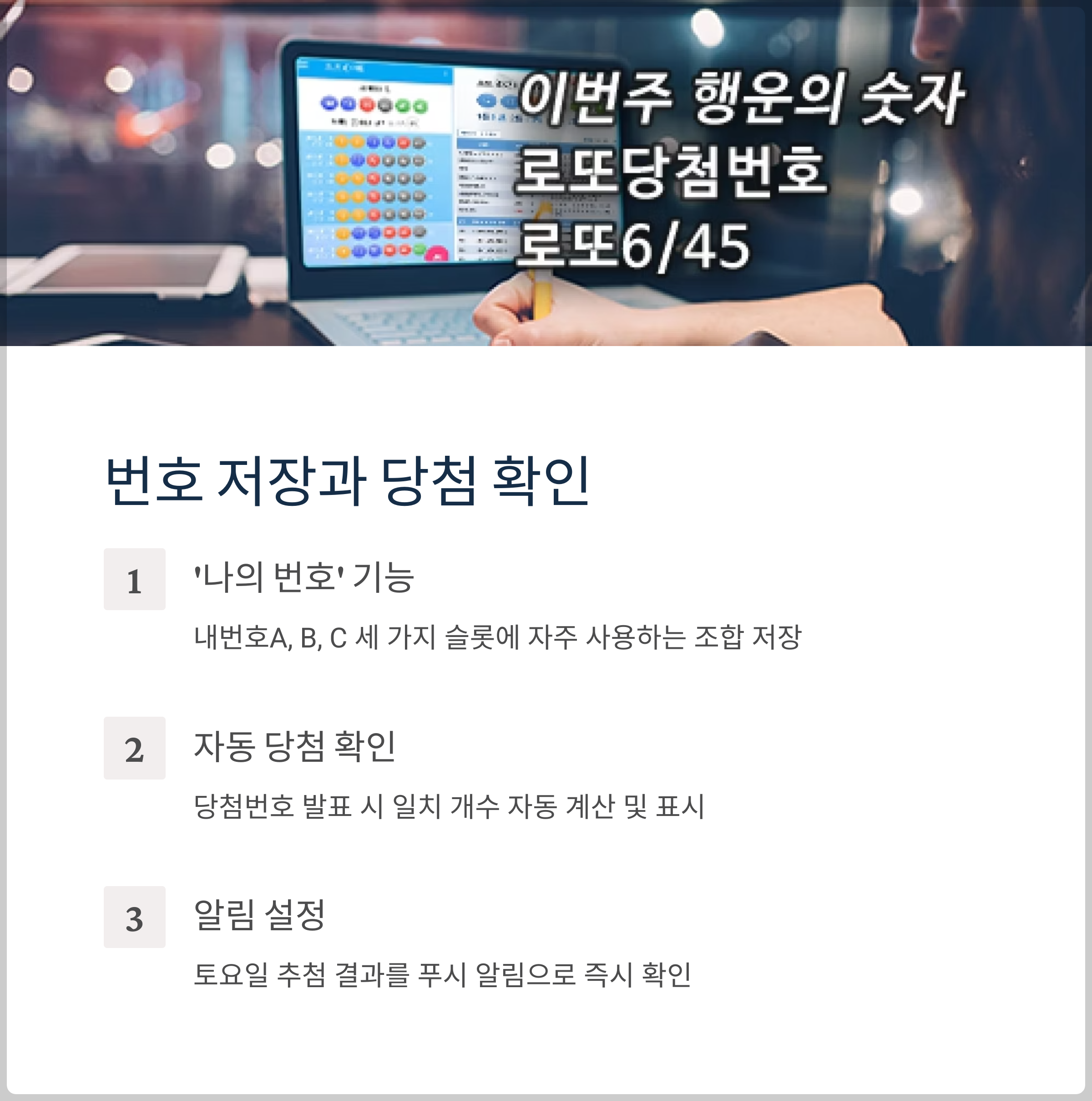 알림 설정을 해두면 매주 토요일 추첨 결과를 푸시 알림으로 받을 수 있습니다. 앱을 직접 실행하지 않아도 당첨 결과를 바로 확인할 수 있어 매우 편리했습니다. 또한 '최근 5주간 정보' 메뉴를 통해 지난 결과들을 언제든 다시 확인할 수 있어 패턴 분석에 도움이 되었습니다.