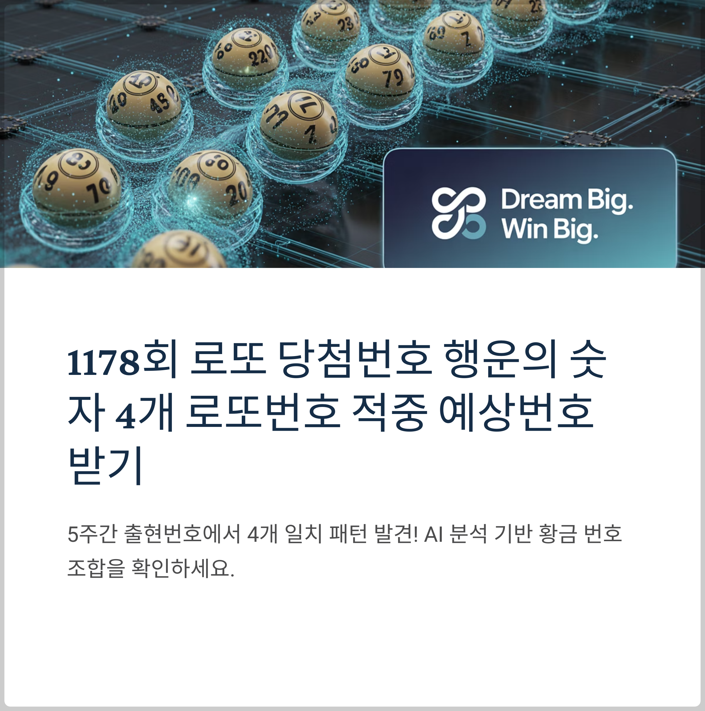 1178회 로또 아이돌 추천 번호와 제외수 분석을 통해 행운의 숫자를 찾고 계신가요? 로또1178회예상 당첨번호가 궁금한 분들을 위해 AI가 추천하는 체계적인 분석을 준비했습니다. 토끼티 행운번호부터 1177회 로또당첨번호 결과 확인까지 종합적으로 살펴보겠습니다.